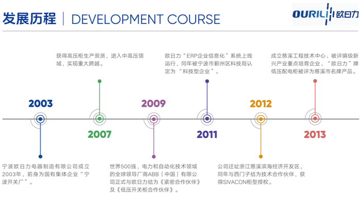 成立慈溪工程技術中心、被評鎮(zhèn)級新興產業(yè)重點培育企業(yè)、“歐日力”牌低壓配電柜被評為慈溪市名牌產品。