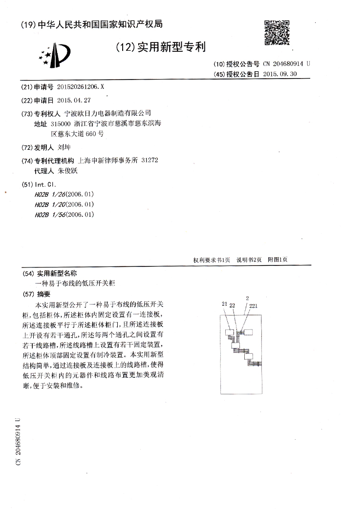 一種易于布線的低壓開關(guān)柜1