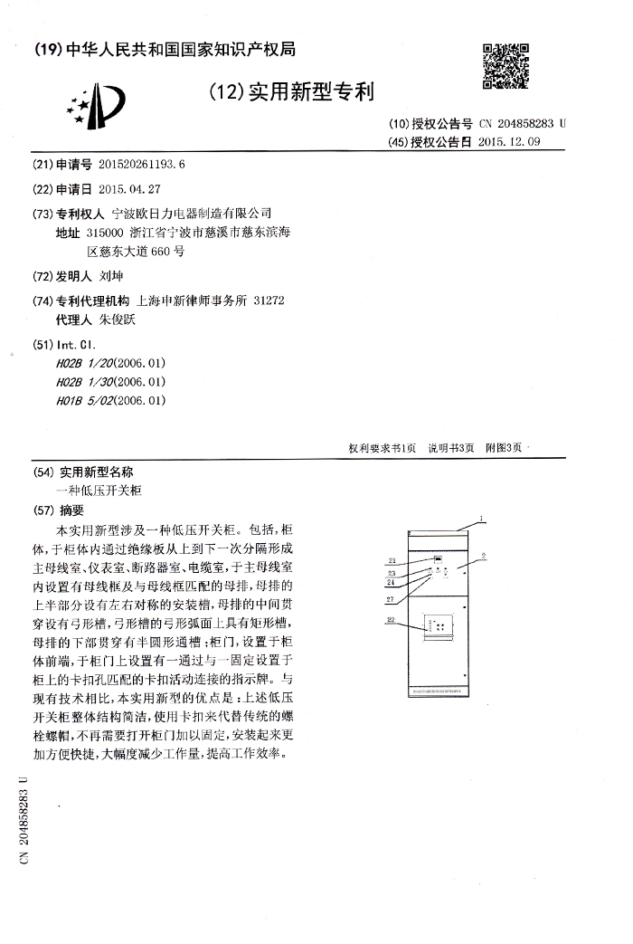 一種低壓開關(guān)柜1