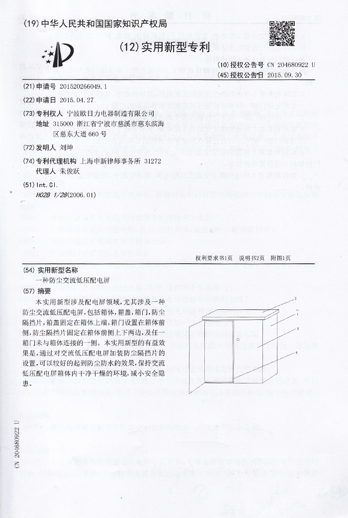 一種防塵交流低壓配電屏1