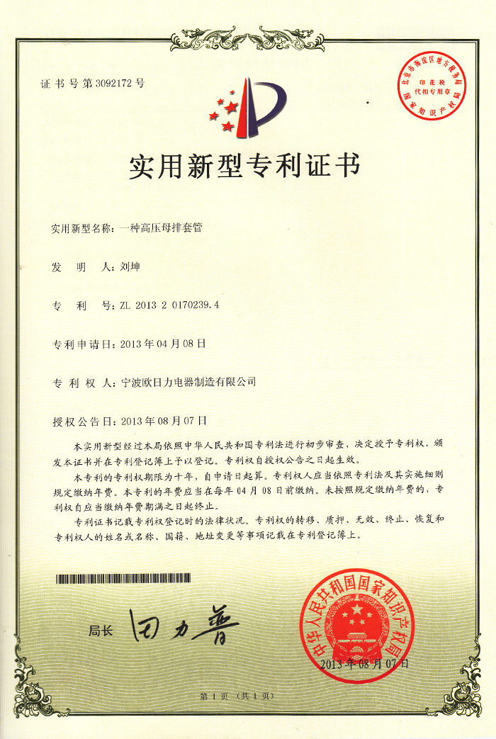 一種高壓母排套管1