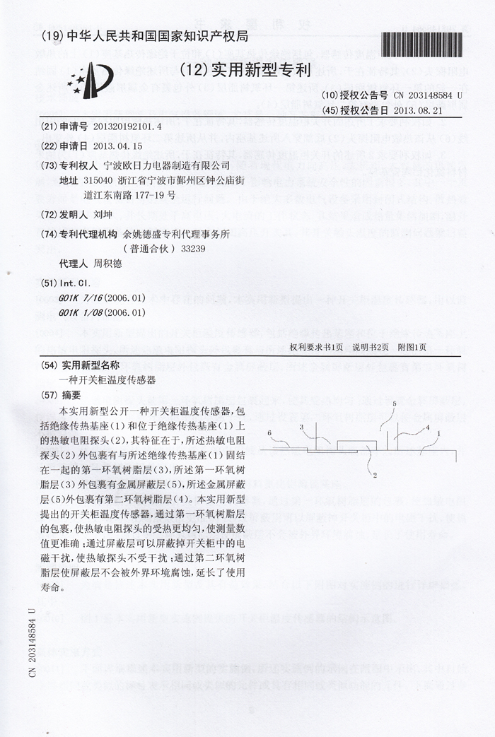一種開關(guān)柜溫度傳感器1